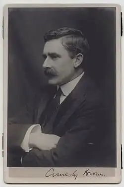Sir John Alfred Arnesby Brown RA (29 March 1866 in Nottingham[1][2] – 16 November 1955 in Haddiscoe, Norfolk[3][2]) was an English footballer and landscape artist who came to be known as "one of the leading British landscape artists of the 20th century".[4] He played in The Football League for Notts County,[5] his only appearance coming in a heavy 9–1 defeat to Aston Villa in September 1888.[6][7] As a landscape artist, he was best known for his impressionistic depictions of pastoral landscapes, often featuring cattle; for his achievements in this field, he was knighted in 1938.