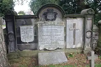 John Blackwood died at Strathtyrum House on 29 October 1879.[39] Blackwood is buried on a small west-facing section of wall on the southern edge of Dean Cemetery in Edinburgh. A secondary memorial to John is within his father's family vault in Old Calton Burial Ground.