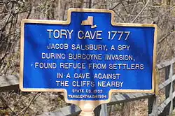 It was here that in 1777, at a spot known as Tory Cave, Jacob Salsbury found refuge from settlers during the Burgoyne Invasion.