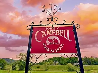 The John C. Campbell Folk School, also referred to as "The Folk School", is located in Brasstown, North Carolina. It is the oldest and largest folk school in the United States.[2][3] It is a non-profit adult educational organization based on non-competitive learning. The Folk School offers classes year-round in over fifty subject areas including art, craft, music, dance, and nature studies. Established in 1925, the Folk School's motto is "I sing behind the plow".[4]