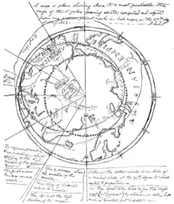 Symmes had sent his declaration (at considerable cost to himself) to "each notable foreign government, reigning prince, legislature, city, college, and philosophical societies, throughout the union, and to individual members of our National Legislature, as far as the five hundred copies would go."[15] Symmes's son Americus wrote of the reaction to Circular No. 1 in 1878, recounting "[i]ts reception by the public can easily be imagined; it was overwhelmed with ridicule as the production of a distempered imagination, or the result of partial insanity. It was for many years a fruitful source of jest with the newspapers."[11] Symmes, though, was not deterred. He began a campaign of circulars, newspaper letters, and lectures aimed at defending and promoting his hypothesis of a Hollow Earth—and to build support for a polar expedition to vindicate his theory.[16]