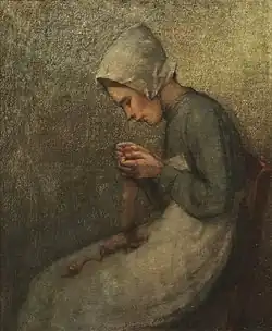 Peasant Knitting, oil on canvas