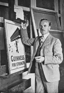 In 1925, he gained employment at S.H. Benson's advertising agency, where he created the iconic advertisement art for Guinness featuring the Zoo Keeper and animals enjoying Guinness.[2] He worked with the crime writer Dorothy L. Sayers.[3] He created cover designs for the Radio Times, most famously, in 1936, one depicting a laughing cat.[4][5] He was also an accomplished portrait painter, numbering royalty, politicians, actors and many others amongst his sitters. He worked in his large studio at 10 Holland Park, London, the former home and studio of Sir Bernard Partridge. He was a long-standing and much loved member of the Garrick Club, where he was created a Life Member and Chairman of the Works of Art Committee 1970–1975. He was awarded and Honorary MA by Newcastle University in 1975, and was made a Freeman of the City of London in 1981.