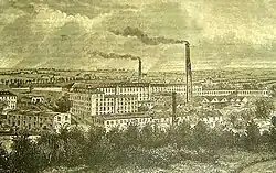 In 1830, John Grubb Richardson entered the family linen export firm, JN Richardson Sons and Owden. In 1841, one of his younger brothers, Thomas Richardson was sent to New York as agent for the family's business.[7] In 1845, John, along with his father and older brother Jonathan, decided to manufacture linen products and purchased a burned-out mill in Bessbrook, then a small village.[1] This project coincided with the beginning of the famine and farmers needed work to buy food.[8] John, the second eldest son in the firm, was the driving force behind the manufacturing venture. Bessbrook was selected for the new business because of the availability of water power and the large amount of flax grown in the area. John expanded the site with new manufacturing buildings constructed with local Mourne granite and dedicated housing for the workforce built to a high standard for the period. In planning the community, John refused to allow a public house, pawn brokers or a police station. He famously stated that a police station was unnecessary if there were no public houses or pawn brokers.[3] In 1852, the firm became one of the first in Ireland to install steam-powered looms.[1]