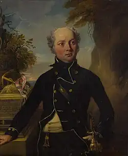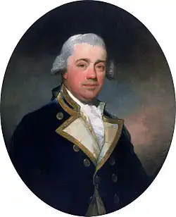 Born in 1740 at Eastry, Kent, John Harvey was the son of Richard and Elizabeth Harvey née Nichols, local gentry. Entering the Navy in 1754, Harvey began a long family naval tradition, taken up by his brother Henry Harvey a few years later. His first ship was HMS Falmouth, a fifty-gun fourth rate in which he stayed for five years into the Seven Years' War. In 1759, promoted to lieutenant with the patronage of Admiral Francis Holburne and distant relation Sir Peircy Brett, Harvey joined the sloop-of-war HMS Hornet and frigate HMS Arethusa, taking shore pay in 1762 at the war's conclusion. The same year he married Judith Wise of Sandwich, Kent and the couple had large family, their sons including several future admirals.[1]