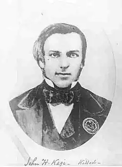 John Henry Kagi, also spelled John Henri Kagi (March 15, 1835 – October 17, 1859), was an American attorney, abolitionist, and second in command to John Brown in Brown's failed raid on Harper's Ferry. He bore the title of "Secretary of War" in Brown's "provisional government." At age 24, Kagi was killed during the raid.[1] He had previously been active in fighting on the abolitionist side in 1856 in "Bleeding Kansas". He was considered an excellent debater and speaker.[2]
