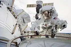 During the mission Herrington performed three spacewalks, totaling 19 hours and 55 minutes. These spacewalks are commemorated on the reverse of the 2019 Sacagawea dollar coin.[6]