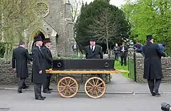 John Horwood's funeral, 13 April 2011. The coffin was carried on a wheeled bier in the manner of elegant funerals of the period of his death.