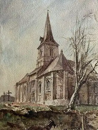 Delamotte travelled with Petit on several occasions, contributing drawings to Petit's Architectural Studies in France (1854, reprinted 1870)[23] and occasional illustrations to his articles.[24] In Delamotte's book, The Art of Sketching from Nature (1871), he included Petit alongside the work of a roll call of 10 of the great professionals of the age including Turner, Prout and Birket Foster.[25]