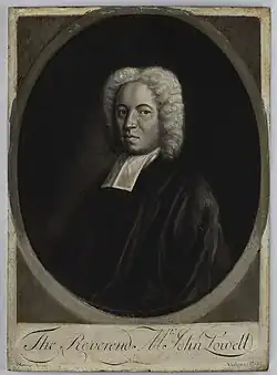 Rev. John Lowell (born in Boston, Massachusetts on March 14, 1704; died in Newburyport, Massachusetts on May 17, 1767) was a colonial Massachusetts clergyman. He was the first minister in the history of Newburyport, Massachusetts and the father of John Lowell, the delegate to the Congress of the Confederation.