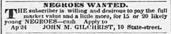- ^ "1844 ad by John M. Gilchrist for the private sale of 113 enslaved Black people in Charleston, SC". The Charleston Daily Courier. April 18, 1844. p. 3. Retrieved 2024-05-24.