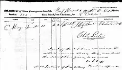 - ^ "Passengers". The Charleston Daily Courier. November 11, 1841. p. 2. Retrieved 2024-05-24.