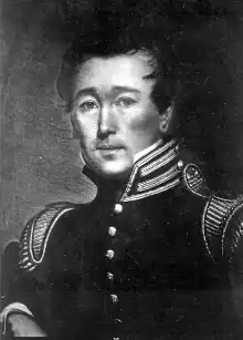 John M. Washington was born in Virginia, and was a remote relative of President George Washington. He graduated from West Point in 1817, and fought in Florida against the Seminole and Creek people. He served with distinction in the Mexican–American War of 1846–1848 under Brigadier General John E. Wool, being promoted to major and brevet lieutenant colonel following the Battle of Buena Vista. He reached Santa Fe on 10 October 1848 with four dragoon companies. The next day he assumed office as governor, combining the civil and military roles.[1]