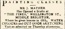Mr John Mather is reported to have had a wide celebrity as a teacher, and ... there are artists of repute in Melbourne now who commenced their careers in his Austral School in Collins Street.[21] He gave lessons at his studio in the Austral Building and at his residences. His lessons included outdoor sketching excursions, often along the coast, where students used pencil, pen and ink and watercolor.[151]
