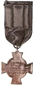On 28 May 1935, the New York chapter of the Red Cross wrote a letter on behalf of John Otto Siegel to the Bureau of Navigation, Navy Department, Washington D.C. requesting a duplicate Medal of Honor be issued.[17] The letter states that in November 1934 John was employed as an "Iron Worker" on the Boulder Dam project, in the "Death Valley Junction" of Nevada and that during this time a fire swept through the camp, believed to be Williamsville (known to its inhabitants as Ragtown) destroying all his belongings including his medal and service documents. On June 17, 1935, the Bureau replied with instruction on how to apply for a replacement medal.