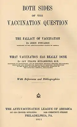 18. ^ Pitcairn, John (1907). Vaccination. Anti-Vaccination League of Pennsylvania.