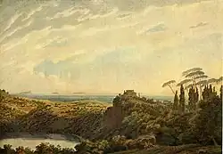 The son of the Russian-born drawing master and watercolourist Alexander Cozens, John Robert Cozens was born in London. He studied under his father and began to exhibit some early drawings with the Society of Artists in 1767. In 1776 he displayed the large oil painting, A Landscape with Hannibal in His March Over the Alps, Showing to His Army the Fertile Plains of Italy (now lost) at the Royal Academy in London.[2] This painting was the only oil that Cozens exhibited at the Academy and was the inspiration for J. M. W. Turner's famous painting of 1812.[3]