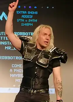Robertson has performed in venues as large as the National Exhibition Centre in Birmingham as part of the Insomnia Gaming Festival, and at the London Film and Comic Con and MCM London Comic Con.[6] Robertson also performs at established comedy venues including The Stand Comedy Club,[7] Gilded Balloon,[8] and Komedia in Brighton.[9]