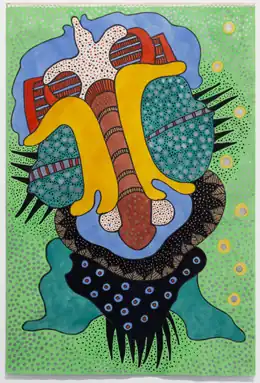 John Schacht (February 12, 1938 – August 10, 2009) was a self-trained, American artist based in the Midwest.[1][2] His art ranges from biomorphic abstract paintings to folk-inspired, semi-representational drawings to ritual-like performances, altars and assemblages.[3][4][5][6] Critics sometimes relate his work to Chicago Imagism due to shared affinities for fantastical and erotic imagery, Pop art-like psychedelia, and folk-art and vernacular sources.[4][3][1] Friends and colleagues have stated, however, that Schacht, who exhibited inconsistently during his lifetime, was never part of that circle.[5][7] Schacht was a pre-Stonewall generation gay man; New Art Examiner critic Michel Segard sees in his work a "palpable" sense of the emotional isolation of the closeted gay culture of the 1970s and 1980s.[1] Schacht's work has received its fullest recognition posthumously, through reviews in The New York Times, New Art Examiner, The Brooklyn Rail and Vulture of exhibitions at The Knockdown Center in Queens, New York (2016) and Iceberg Projects in Chicago (2018).[4][1][3][8]