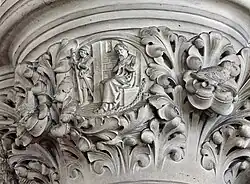 Sleyne is commemorated within the neo-gothic St Colman's Cathedral of Cobh. The molded capitals,[88] at the top of the internal columns, depict key scenes of the history of the diocese of Cork and Cloyne, two of which relate to Sleyne's imprisonment and exile. These are entitled Bishop John Baptist Sliney imprisoned in Cork and Bishop Sliney sentenced to transportation to Portugal.[89] Because the cathedral was completed 200 years after Sleyne's death, it is improbable that the images bear any resemblance to Sleyne himself.