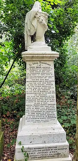 - ^ a b Historic England. "Monument to John Swan in Abney Park Cemetery (Grade II) (1257265)". National Heritage List for England. Retrieved 24 April 2020.
