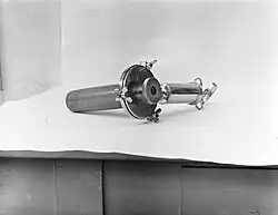 Owens later developed other, more sophisticated (and more automated) pollution measuring devices, including one based on a siphon and, in 1921, another, known as the jet dust counter, that accelerated air samples toward glass slides so the composition of pollution could be studied under a microscope.[13][14][15] Two of Owens' inventions were patented in Britain as "An Instrument for Measuring the Density of Smoke from Factory and other Chimneys" (1911)[16] and "Apparatus for Measuring the Amount of Suspended Impurity in the Air" (1914);[17] Owens held around 30 other British patents for devices as varied as concrete mixers, bomb throwers, sheet pilers, and various forms of sea defence.[18]