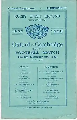 Oxford v Cambridge 1930 Varsity Rugby Programme