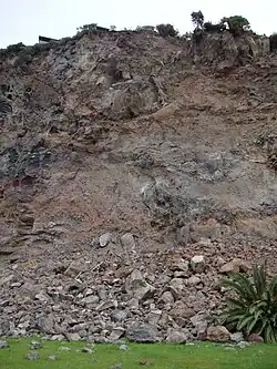 Rockfall in Peacock's Gallop reserve caused by the February 2011 Christchurch earthquake.