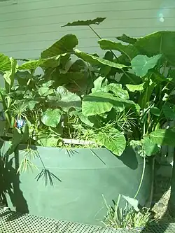 The first "Living Machine" was created at Findhorn Ecovillage in Moray, Scotland in 1995.[3] For its design, John Todd drew on the work of Käthe Seidel and H.T. Odum.[3] The system had to accommodate wastewater from an ongoing population of about 300 residents, and a seasonally fluctuating population of as many as 10,000 visitors per year.[19] The resulting installation resembles a tropical conservatory garden. Every organism provides food for the next step in the food chain until the cycle is complete.[3]