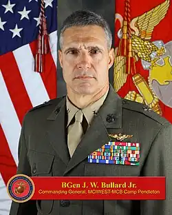 John W. Bullard Jr. is a retired U.S. Marine brigadier general who served as the commander of the 11th Marine Expeditionary Unit and Commanding General, Marine Corps Installations West - Marine Corps Base Camp Pendleton.
