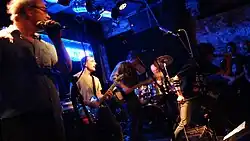 Wright is best known as the drummer, keyboardist, occasional vocalist and co-songwriter in the progressive punk rock/punk jazz band NoMeansNo, as well as the lead singer and co-songwriter of the pop-punk group The Hanson Brothers.[1] Both groups also feature Wright's older brother Rob and guitarist Tom Holliston.[2] He has also performed in noted Canadian punk groups DOA, the Showbusiness Giants, and the Infamous Scientists. He was the songwriter and "musical director" for Compressorhead, a collaboration with Berlin-based artist Frank Barnes consisting of a "band" of robots that play real instruments.[3] In 2023, Wright formed the band Dead Bob who released their debut album, Life Like, in November of that year.[4]