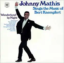 Johnny Mathis Sings the Music of Bacharach & Kaempfert is an album by American pop singer Johnny Mathis that was released in the fall of 1970 by Columbia Records.[1] While one half of the two-record set was a compilation of tracks from his previous albums that were composed by Burt Bacharach, the other consisted of new recordings of songs composed by Bert Kaempfert, including a new version of "Strangers in the Night", which Mathis had already recorded in 1966 for his LP Johnny Mathis Sings. Although the Kaempfert tribute was similar to recent Mathis albums in that he was mainly covering songs made popular by other singers, it was absent of hits from the 12 months previous to its release that had become the pattern of his output at this point. The latest US chartings of any of the Kaempfert compositions as of this album's debut came from 1967 recordings of "Lady" by Jack Jones and "The Lady Smiles" by Matt Monro.[8]