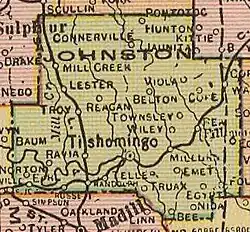 3. ^ a b c d e f g h i j k l m O'Dell, Larry. "Johnston County," Encyclopedia of Oklahoma History and Culture, Oklahoma Historical Society, 2009. Accessed April 4, 2015.