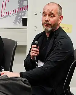 He was chair of the Association for Photography in Higher Education from 2014 to 2017.[7] He sits on the editorial board of Media Practice & Education,[8] and was a guest editor of a "special disrupted issue" of the Journal of Media Practice in May 2018.[9] He is the international member of the academic board of the Photography Studies College, Melbourne, Australia,[10] and a visiting professor at Bournemouth University's Centre for Excellence in Media Practice.[11]