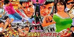 Jor Kore Bhalobasha Hoy Na is a 2013 Bangladeshi action thriller film. The film was directed by Shahadat Hossain Liton and produced by Abdul Mabud Kawser under the banner of Tushar Kotha Chitra. It featured Shakib Khan, Sahara and Ayesha Salma Mukti in lead roles. Misha Sawdagor, Sadek Bachchu, Ali Raj and others also played important roles in the film.[1][2] It was the first digital film starring by Shakib Khan.[3] It was a remake of 2002 Hindi film Tumko Na Bhool Paayenge.