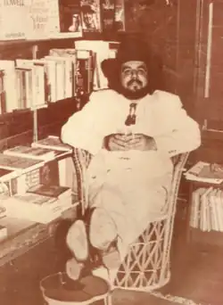 During the 1980s, he became known to the Chicano world as The Black Hat Poet, the bearded Resistol cowboy hat-wearing, beer-drinking poet who wore starched blue jeans and a lizard earring, not the mental picture of what comes to mind when one thinks of a Chicano.[2] Audiences especially enjoyed the humor in his writing and performances.