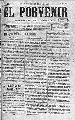 80. ^ it was founded by Antonio de Valbuena, at that time editor of the chief Nocedalista tribune, El Siglo Futuro, Navarro Cabanes 1917, p. 138