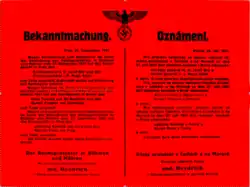 On the first day of his tenure as Reichsprotektor in Bohemia and Moravia, 27 September 1941, Reinhard Heydrich, seeking to break the resistance of Czech patriots, declared a civil emergency. In this he stated that the military court in Prague had found Bílý and Division General Hugo Vojta guilty of treason and sentenced them to death. Bílý was executed on 28 September 1941, at 9 pm by a firing squad. On the scaffold, he refused to wear a blindfold. His last words were: “Long live the Czechoslovak Republic! Dogs, fire!"[1][2][3]