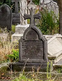 Joseph Brittan was born on 12 January 1806 in Bristol, England, into a respectable middle-class family that originated in Bristol.[2][3] His father was a brewer.[3] He was listed in Kelly's 1848 Directory of Dorset for Sherborne under the heading "Traders" as "agent to Royal Exchange & fire office," and also with his brother William G as "proprietors of 'Sherborne & Yeovil Mercury'". He lived at some point in Linwood, Hampshire.[4][2] His first wife was Elizabeth Mary Chandler with whom he had seven children. Three of them died in infancy, and then his wife died in 1849, two weeks after the birth and death of their last child.[2] The surviving children were Joseph (Joe), Arthur, Elizabeth Mary (Mary)[5] and Frances (Frank).[6][7]