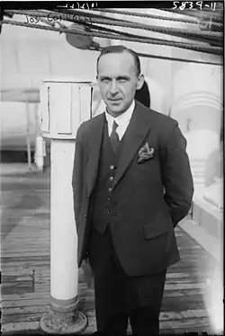 After his release he helped re-organise Sinn Féin in Belfast. He was selected as a candidate for the party in the 1918 general election for Mid Antrim. Though unsuccessful he polled 2,791 first preferences and saved his deposit.[7] He served on the Commission of Inquiry into the Resources and Industries of Ireland which had been set up by the First Dáil in 1919.[8] From October 1921 to November 1922 he served as Consul General of the Irish Republic to the United States in New York City.[9] He disposed of his business in Belfast at this time. One of his chief roles was to combat propaganda from Britain unfavourable to Sinn Féin and the IRA. When the Anglo-Irish Treaty was signed he was very cautious in forming an immediate public opinion on it though was nervous about splits in the wider organisation.[10] After the 1922 general election, and the arrival of Professor Timothy Smiddy as an accredited Ambassador in Washington, he was informed that he no longer held any recognition in the eyes of the US Government and so he returned home to Ireland.[11] His family had at this time moved to Dublin and they set up home at Harold's Cross, never returning to Belfast. The Irish Civil War had then commenced and he formally tendered his resignation to the Free State Government.