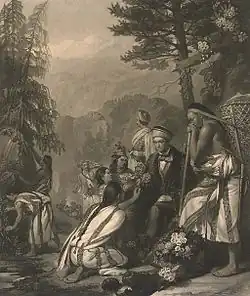 Hooker and a sizeable party of local assistants departed for eastern Nepal on 27 October 1848. They travelled to Zongri, west over the spurs of Kangchenjunga, and north west along Nepal's passes into Tibet. In April 1849 he planned a longer expedition into Sikkim. Leaving on 3 May, he travelled north west up the Lachen Valley to the Kongra Lama Pass and then to the Lachoong Pass. Campbell and Hooker were imprisoned by the Dewan of Sikkim as they travelled towards the Cho La in Tibet.[25][26] A British team was sent to negotiate with the king of Sikkim. However, they were released without any bloodshed and Hooker returned to Darjeeling, where he spent January and February 1850 writing his journals, replacing specimens lost during his detention and planning a journey for his last year in India. According to an 1887 journal written by Indian administrator Richard Temple, many of the rhododendrons found in English gardens of the time were grown from seeds collected by Hooker in Sikkim.[27]