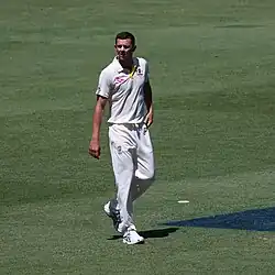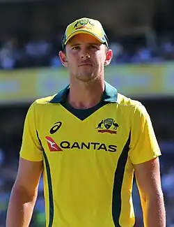 Josh Reginald Hazlewood (born 8 January 1991) is an Australian international cricketer. He is a pace bowler known for his accuracy and has been compared to former Australian paceman Glenn McGrath.[4] He has captained Australia in a ODI and served as a Test vice-captain after the 2018 Australian ball-tampering scandal. Hazlewood currently ranks no.4 in Test, no.11 in ODI and no.16 in T20I in the ICC Men's Player Rankings.[5][6][7] He won multiple ICC tournaments with the Australian team: the 2015 Cricket World Cup, the 2021 T20 World Cup and the 2023 Cricket World Cup.