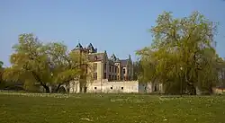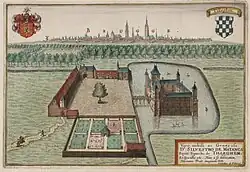 Tillegem Castle, the van Aertrycke family seat, in the first half of the 17th century - Image from Flandria Illustrata (1641)