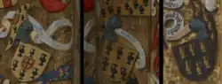 6. ^ This is mentioned by Steen Clemmensen, doctor of Humanities and Medieval Heraldry, in his essay from 2010, Tournament in Bruges held 11th March 1393, led by Jean d'Aa Sr. de Gruuthuse and Jean de Ghistelles Sr. de Gistel & Harnes, published in Farum, Denmark.