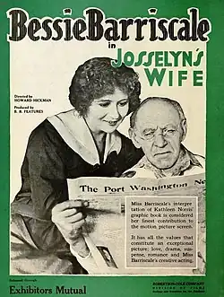 Josselyn's Wife is a 1919 American silent drama film based on a novel by Kathleen Norris. It was directed by Howard C. Hickman and starred Bessie Barriscale, Nigel Barrie, and Joseph J. Dowling. The novel was adapted to film again in 1926 with Pauline Frederick.[1]