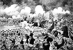 He was remembered as a hero, distinguishing himself especially at the Battle of Mišar (13–15 August 1806),[6] where Ottoman troops were decisively defeated by Serb troops led by priest Luka Lazarević.[7] Among the Ottoman fallen, many were notable Bosnian nobility, among whom were Mahmud-beg Kulenović of Kulen-Vakuf and Mehmed-kapetan Vidajić and his two sons.[7] Among the loot Tomić collected at Mišar were several pistols of Mehmed Bey Kulenović, who fell at the battle.[8] Tomić managed to graze Mehmed-kapetan Vidajić in the battle and take his sword.[3] He continued to use that sword in battles.[3] He participated in many of the battles by the Drina, and also crossed and fought over in Bosnia.[3]
