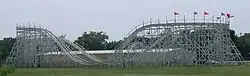 The roller coaster was extensively damaged by a windstorm on the morning of April 3, 2015, including the destruction of large portions of elevated track.[11][12] In April, the owner's son Roger Nelson, told reporters, "We are in the process of tearing it all down", referring to the roller coaster and the remaining buildings on the site. He had announced the previous week that the Preservation Alliance had purchased several of the park's marquee attractions, including the Whacky Shack and a horse and buggy ride, and was negotiating to purchase the full-size train caboose as well.[13] On July 23, 2015, the components of the roller coaster which remained standing were demolished.[14]