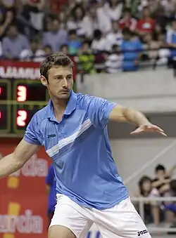 Juan Carlos Ferrero Donat (Spanish: [xwaŋ ˈkaɾlos feˈreɾo ðoˈnat];[a] born 12 February 1980) is a Spanish former professional tennis player and current coach. He was ranked as the world No. 1 in men's singles by the Association of Tennis Professionals (ATP). Ferrero won 16 ATP Tour-level singles titles, including the 2003 French Open and four Masters events. He was also runner-up at the 2002 French Open and 2003 US Open. He was nicknamed "el Mosquito" for his speed and slender physical build.[1] Ferrero retired from the sport in 2012.[2]