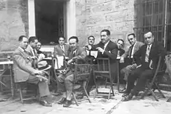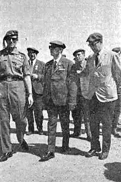 Palomino was intrinsically involved in Carlist anti-Republican conspiracy of 1936; details are unclear.[80] Jerez was easily seized by the rebels and Andalusian Carlism enjoyed its days of triumph, but in late 1936 Palomino was scarcely noted for his party activity, recorded rather during religious services to the fallen requeté.[81] Though he did not form part of the nationwide Carlist executive Juna Nacional Carlista, he counted among members of the broad party command layer. He was present during the crucial Carlist meeting in Insua of February 1937, when regent-claimant and the movement leaders discussed the threat of forced amalgamation into a unificated state party. It is not clear whether Palomino sided with the tractable Rodeznistas or with the intransigent Falcondistas,[82] even though for years he remained a close acquaintance of Fal Conde. However, following the Unification Decree Palomino was not listed as member of the FET structures; quite to the opposite, following 1937 he entirely disappeared from politics. If present in the press, it was because of the winegrowing business he kept advertising;[83] indeed, it seems that during the following decades Palomino dedicated his time to commercial activities.