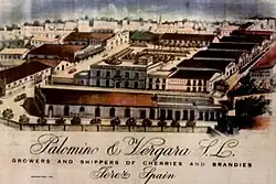 Most authors when referring distant Palomino past point to a half-mythical knight Fernán Yáñez Palomino, who originated either from Cantabria[1] or Navarre.[2] He made his name during Reconquista,[3] distinguished himself in service of Alfonso X and settled in the area of Jerez de la Frontera in the 13th century.[4] A frequently repeated account holds that the Palominos have been since then busy with "cultivo del viñedo y crianza de vinos"[5] in the region, though documents confirm this starting the year of 1483.[6] During the following four centuries the family got very branched and scattered throughout not only the province of Cádiz, but also across most of Western Andalusia.